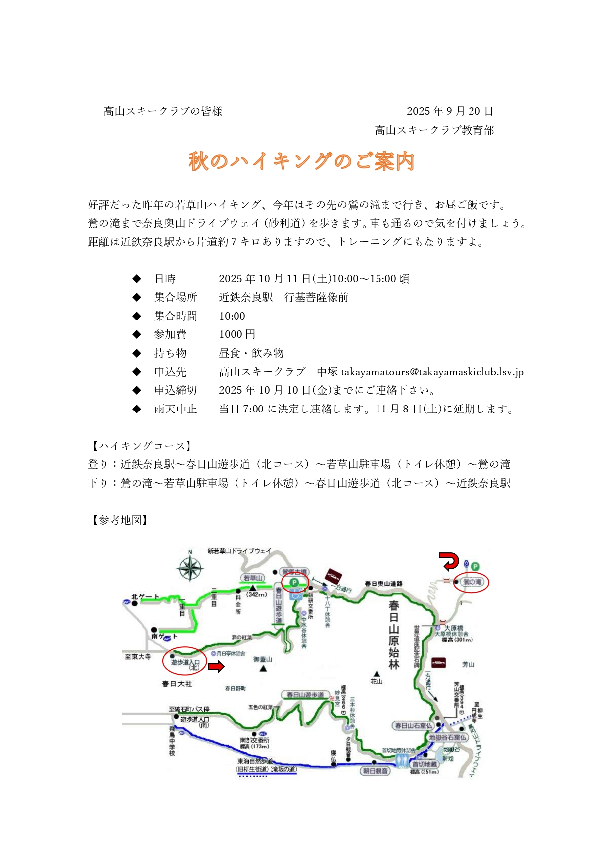 (※途中で場所変更の可能性あり、随時連絡・ホームページに掲載)